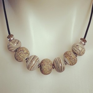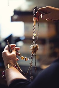 This season I designed a new line of Boho Glass/Leather Chokers that are ageless in their appeal. They pair beautifully with my multi strand leather bracelets featuring magnetic clasps. When it comes to commissions there are lots of photos going back and forth by text so the details of my designs are exactly what the guests desire. It is a very collaborative experience.